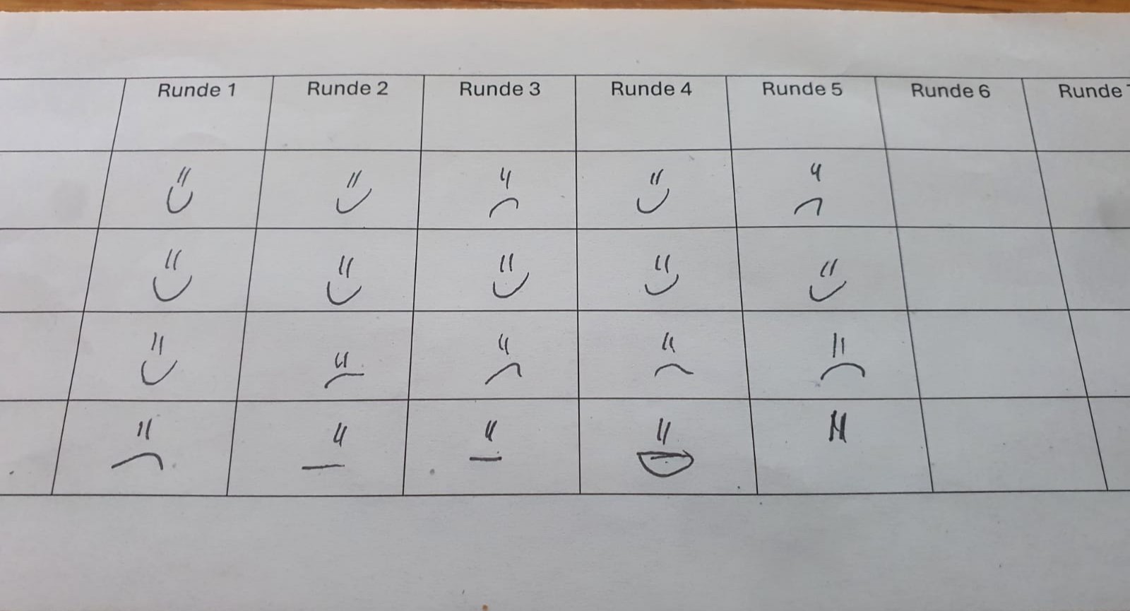 Der ursprüngliche Dokumentationsbogen war im Nachgang nicht mehr verfügbar, weshalb eine rekonstruierte Fassung erstellt wurde. Eine kleine Besonderheit am Rande: In Runde 5 an Brett 4 blieb der Smiley ohne Mund – ein augenzwinkernder Hinweis darauf, dass die Spielerin nach der Partie zunächst sprachlos war.